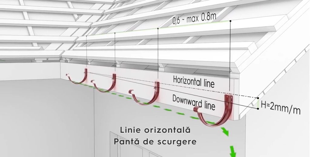 Unul dintre cele mai importante accesorii în montarea unui sistem de scurgere sigur, îl au cârligele. Ele au rolul de fixare, și ca urmare pe ele sunt instalate jgheaburile. Metoda cea mai simplă pentru un calcul exact, i se atribuie căpriorilor. La general distanța de la căprior la căprior este de 0,80 cm, asta fiind soluția perfectă pentru determinarea numărului de cârlige.