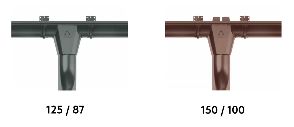 Există două dimensiuni a sistemului pentru preluarea apei de pe acoperiș. Astfel, acesta fiind disponibil în dimensiunile 125/87 și 150/100, este menit să preia apele pluviale, asigurând scurgerea direcționată către sol. Jgheaburile cu diametrul 125 mm se recomandă pentru case mici și mijlocii, iar jgheaburile cu diametrul 150 mm pot fi utilizate și la clădiri industriale, cu o suprafață considerabilă de acoperiș.