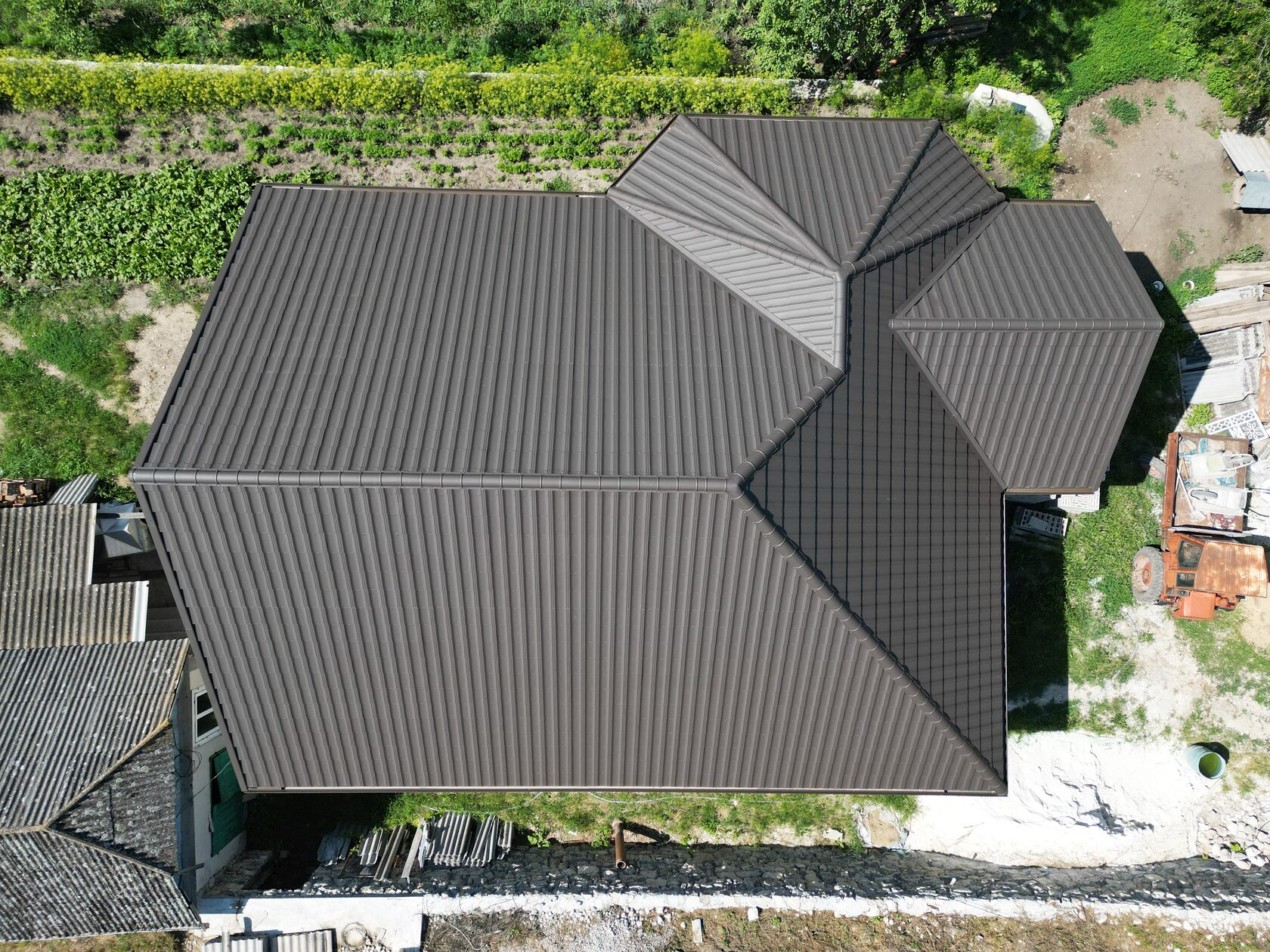 Am livrat pentru montare pe acoperișul acestei case din satul Corjeuți, raionul Briceni, țigla metalică Roofart Arctica, profilată din tablă suedeză premium SSAB, culoarea RAL 8019, grosimea metalului 0,50 mm, grosimea totală – 0,54 mm, zinc – 275 g/m2, cu garanție 50 de ani la coroziune și 25 ani la culoare. De asemenea, am livrat sistem pluvial din jgheaburi și burlane, profilat din tablă suedeză SSAB, cu garanție 30 de ani la coroziune și 15 ani la culoare.