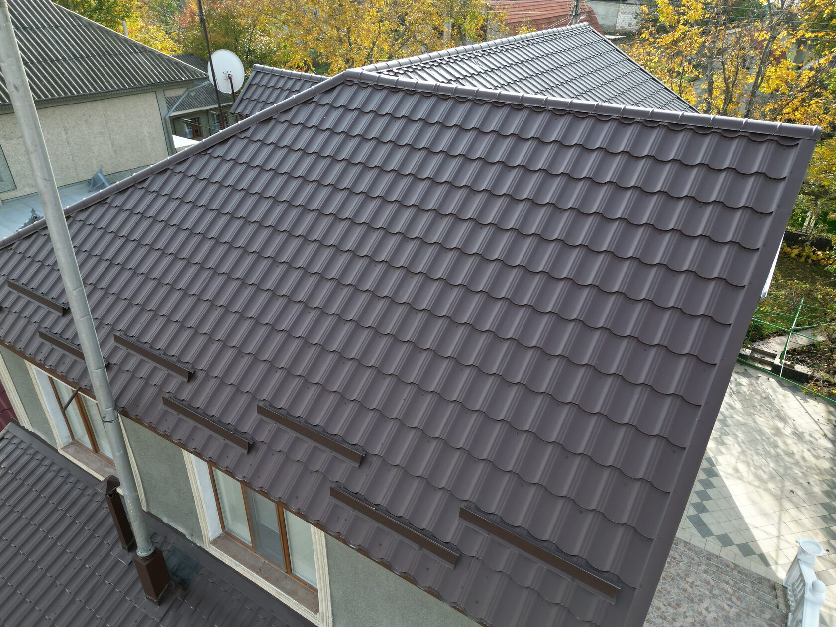 Orașul Orhei. Executarea lucrărilor de schimbare a acoperișului. Foile vechi de ardezie înlocuite cu țigla metalică Roofart Arctica. Culoarea RAL 8017. Tabla Coreea V-Matt, grosimea metalului – 0,45 mm, grosimea totală – 0,48 mm, stratul de zinc – 225 g/m². Garanții: 20 de ani la coroziune și 10 ani la culoare. Streașină căptușită cu tablă cutată (profnastil) imitație lemn. Acoperiș dotat cu sistem pluvial din jgheaburi și burlane. Acestea au fost ingredientele unei lucrări reușite.