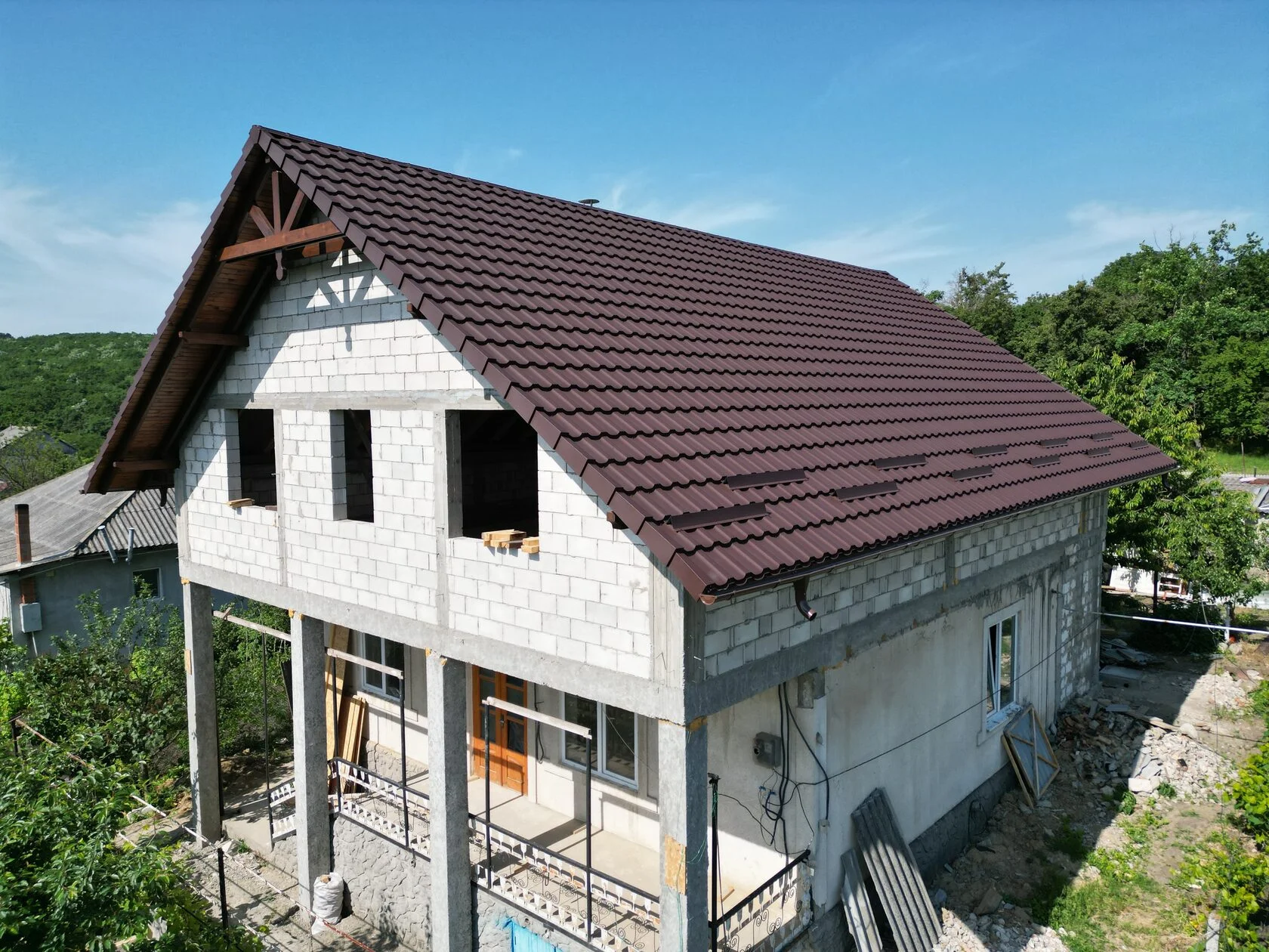 Observați marginile pantelor acoperișului, acolo am montat borduri fronton modulare, la bucată, care arată tare, tare bine și atrag privire chiar și de la câțiva metri.