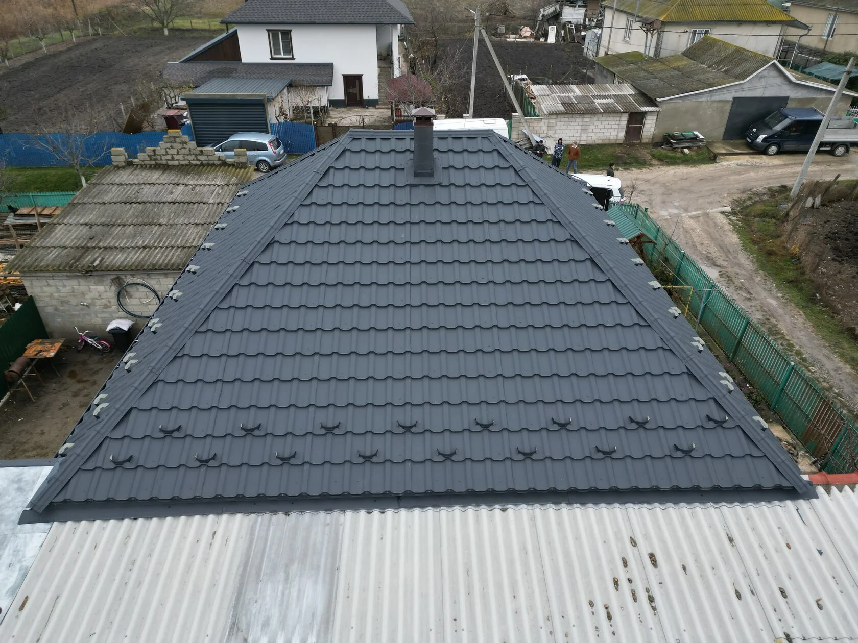 Satul Logănești este situat la 9 km de Hîncești și la 44 km de Chișinău. La acoperișul acestei case noi am livrat pentru montare țigla metalică Geneva, profilată din tablă Coreea V-Matt, grosimea metalului – 0,45 mm, grosimea totală – 0,47 mm, culoarea RAL 7024, cu garanție 20 de ani la coroziune și 15 ani la culoare.