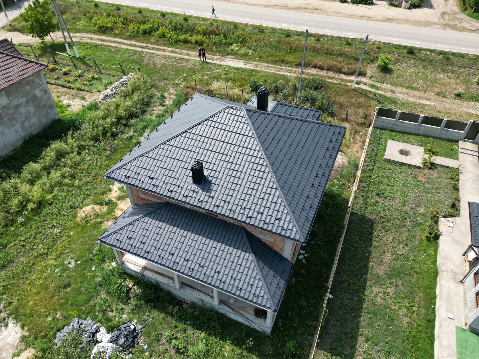 Satul Logănești este situat la 9 km de Hîncești și la 44 km de Chișinău. La acoperișul acestei case noi am livrat pentru montare țigla metalică Geneva, profilată din tablă Coreea Matt, grosimea 0,45 mm, culoarea RAL 7024, cu garanție 20 de ani la coroziune și 10 ani la culoare. De asemenea, acoperișul a fost dotat cu sistem pluvial din jgheaburi și burlane, profilat din tablă suedeză SSAB calitatea Premium.