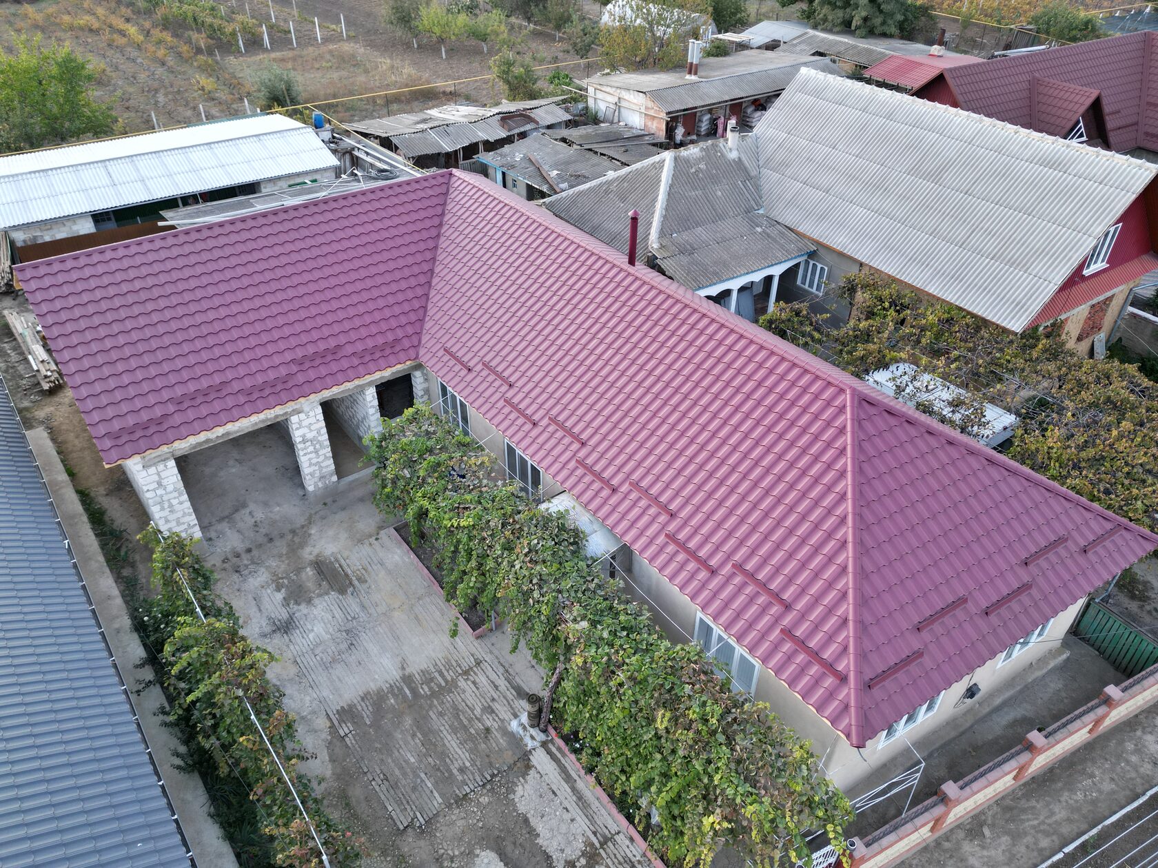 Știați că satul Congaz este satul cu cea mai mare populație din Europa, peste 13.000 de locuitori, fapt constatat de Cartea Recordurilor Guiness? În această localitate din UTA Găgăuzia, am executat lucrările de renovare a acoperișului acestei case, schimbând foile vechi de ardezie cu țigla metalică Mela no, din tablă Coreea V-Matt, culoarea RAL 3005, grosimea metalului – 0,47 mm, cu garanție de 20 de ani la coroziune și 15 ani la culoare. Vă place rezultatul final, văzut de la înălțimea zborului de pasăre?