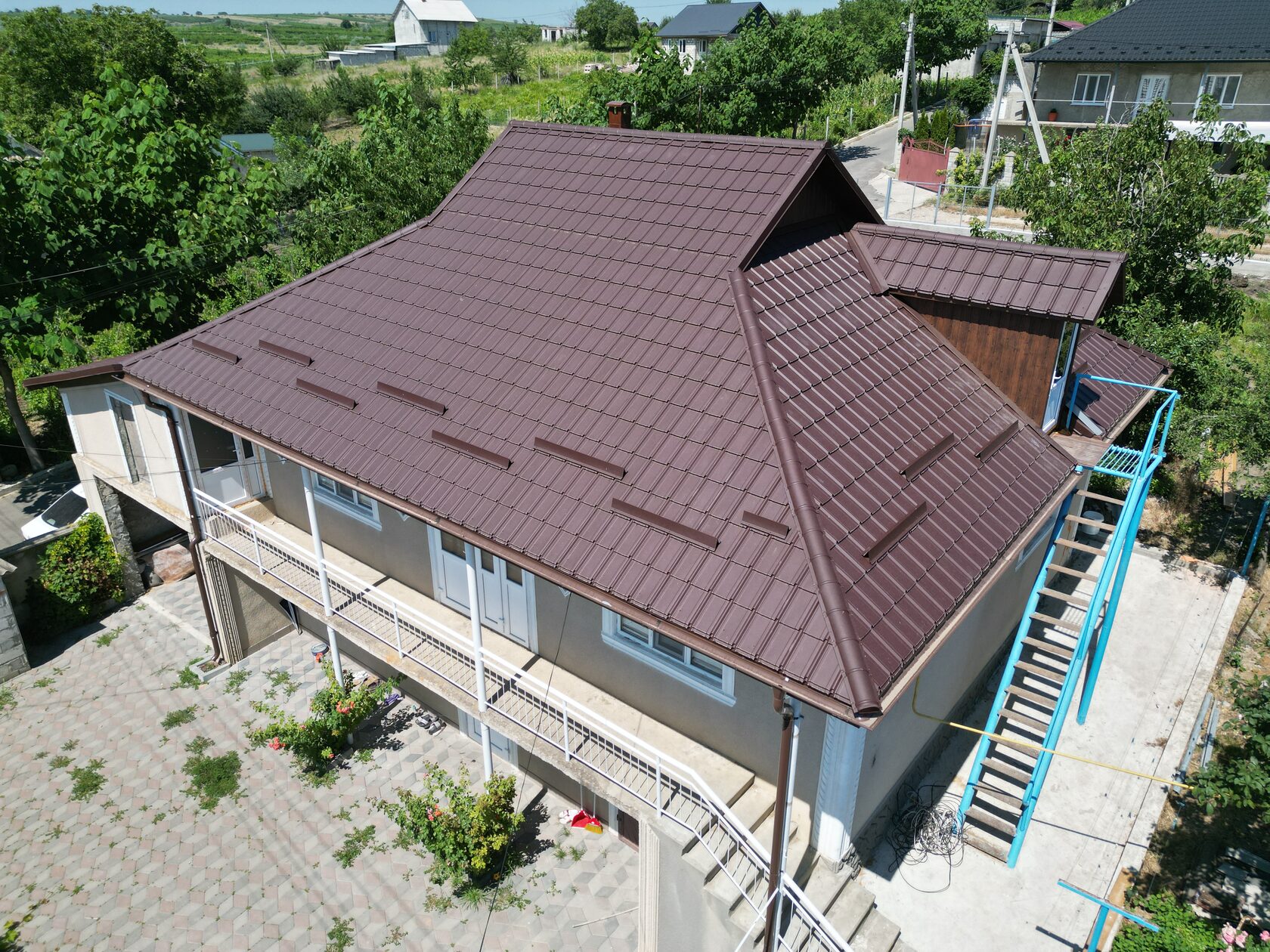 Am schimbat acoperișul acestei case din satul Costești, raionul Ialoveni, cu țigla metalică Roofart Nordica, profilată din tablă suedeză premium SSAB, culoarea RAL 8017, grosimea metalului 0,50 mm, grosimea totală – 0,54 mm, zinc – 275 g/m2, cu garanție 50 de ani la coroziune și 25 ani la culoare.