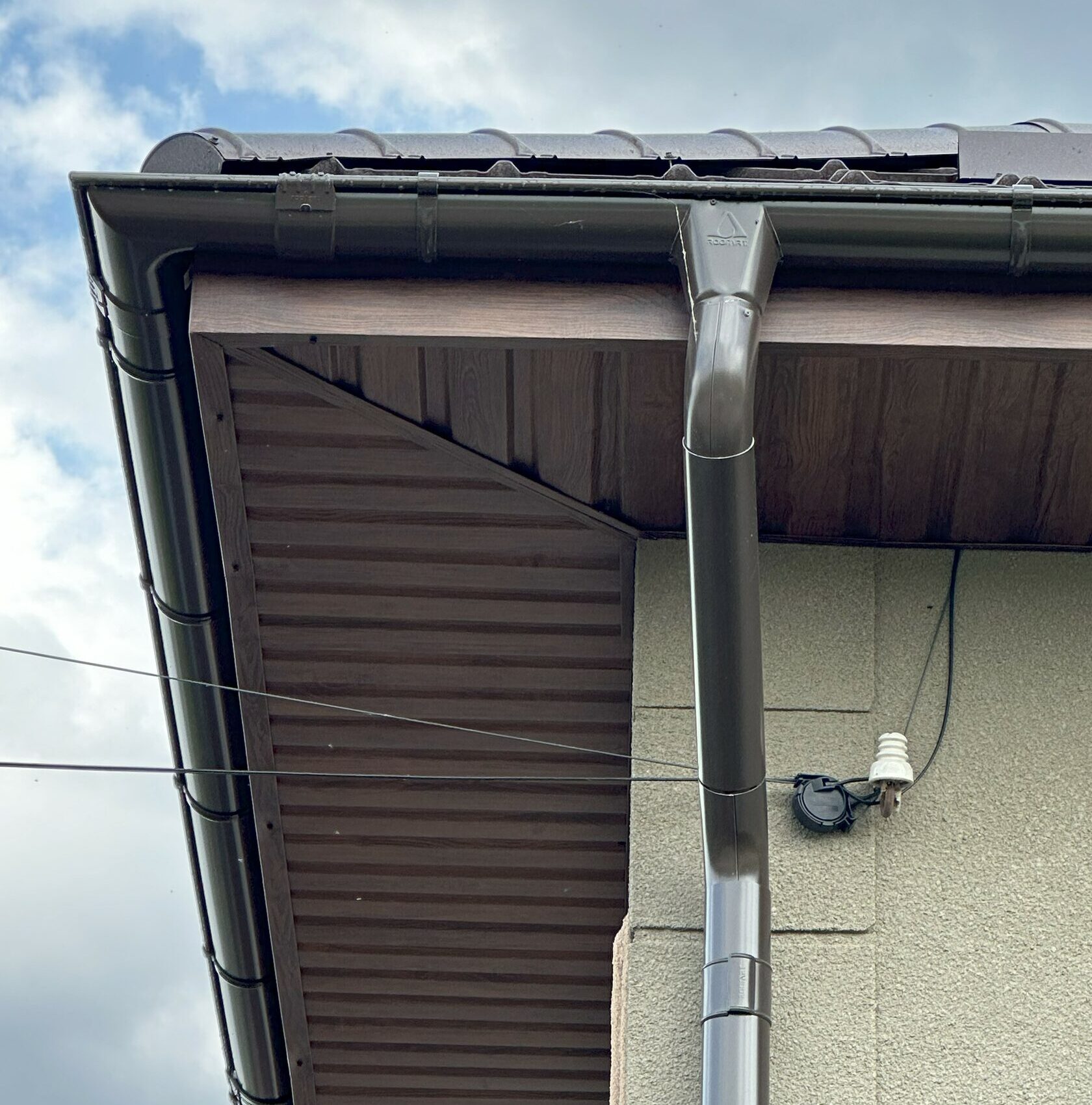 Am renovat acoperișul acestei case din satul Abaclia, raionul Basarabeasca, cu țigla metalică Roofart Nordica, profilată din tablă Coreea V-Matt, culoarea RAL 8019, grosimea metalului 0,45 mm, grosimea totală – 0,48 mm, zinc – 225 g/m2, cu garanție 20 de ani la coroziune și 15 ani la culoare. De asemenea, am căptușit streașina cu tablă cutată (profnastil) Imitație lemn închis, profilată de asemenea din tablă coreeană, cu garanție 20 de ani la coroziune și 10 ani la culoare, și am dotat acoperișul casei cu sistem pluvial din jgheaburi și burlane, profilat din tablă suedeză SSAB, cu garanție 30 de ani la coroziune și 15 ani la culoare.