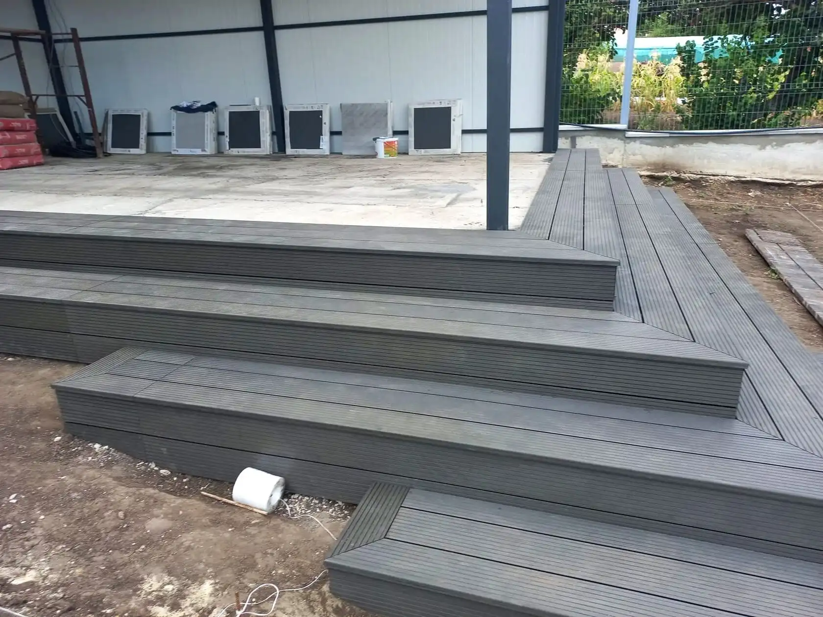 Trepte cu decking din lemn plastifiat WPC la terasă, satul Sociteni, raionul Ialoveni